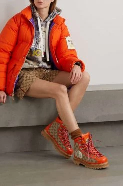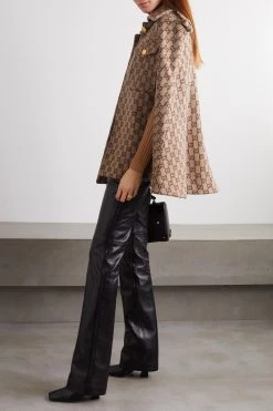 GUCCI Aria Jacke Aus Canvas Aus Einer Baumwollmischung Mit Logomuster Und Lederbesätzen ,Beige