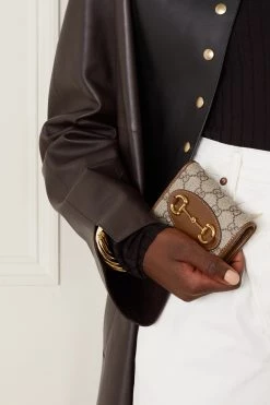 GUCCI Horsebit 1955 Bedrucktes Portemonnaie Aus Beschichtetem Canvas Mit Lederbesätzen ,Beige
