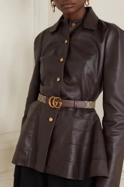 GUCCI Kaftan Aus Canvas Aus Einer Leinenmischung Mit Jacquard-Muster Und Lederbesätzen ,Beige
