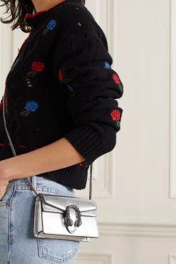 GUCCI Dionysus Super Mini Schultertasche Aus Metallic-Leder ,Silber