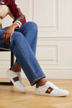 GUCCI Ace Sneakers Aus Leder Mit Webstreifen Und Applikation ,Weiß