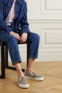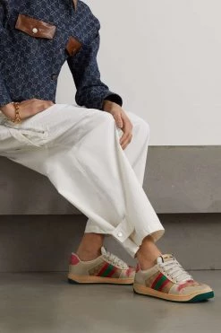 GUCCI Screener Sneakers Aus Canvas Und Distressed-Leder Mit Jacquard-Logomuster ,Beige