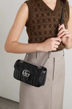 GUCCI GG Marmont 2.0 Schultertasche Aus Gestepptem Leder ,Schwarz