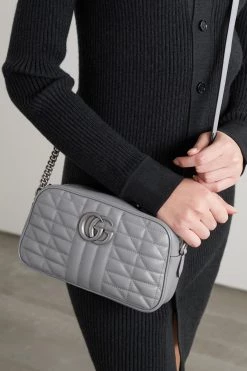 GUCCI GG Marmont Camera 2.0 Mini Schultertasche Aus Gestepptem Leder ,Grau