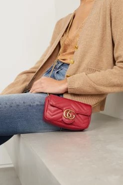 GUCCI GG Marmont Super Mini Schultertasche Aus Gestepptem Leder ,Rot