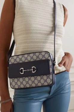 GUCCI Horsebit 1955 Kleine Schultertasche Aus Canvas Mit Lederbesätzen ,Mitternachtsblau