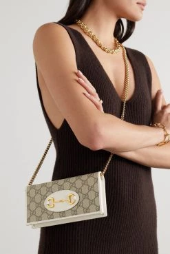 GUCCI Horsebit 1955 Schultertasche Aus Bedrucktem Beschichtetem Canvas Mit Lederbesätzen ,Weiß